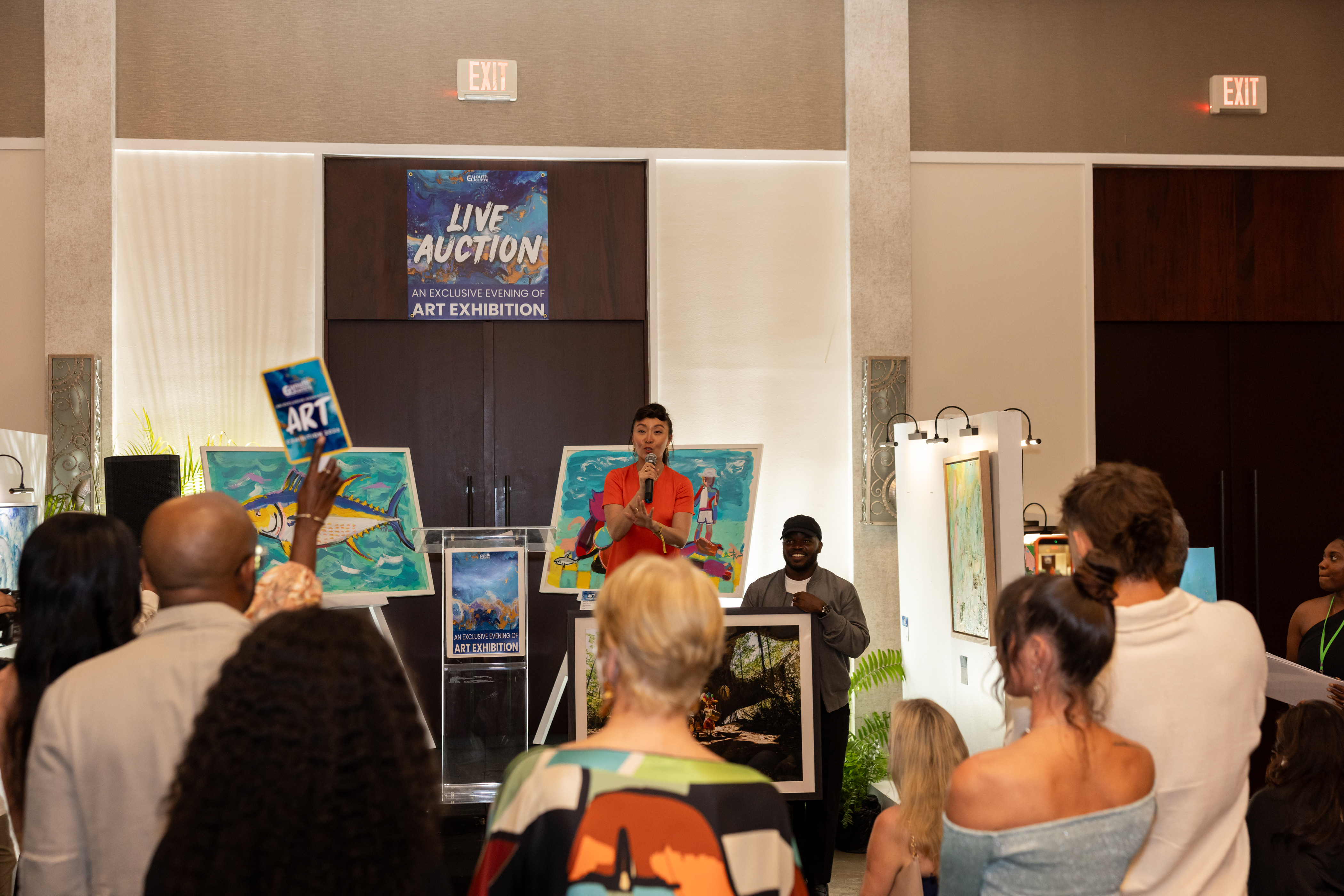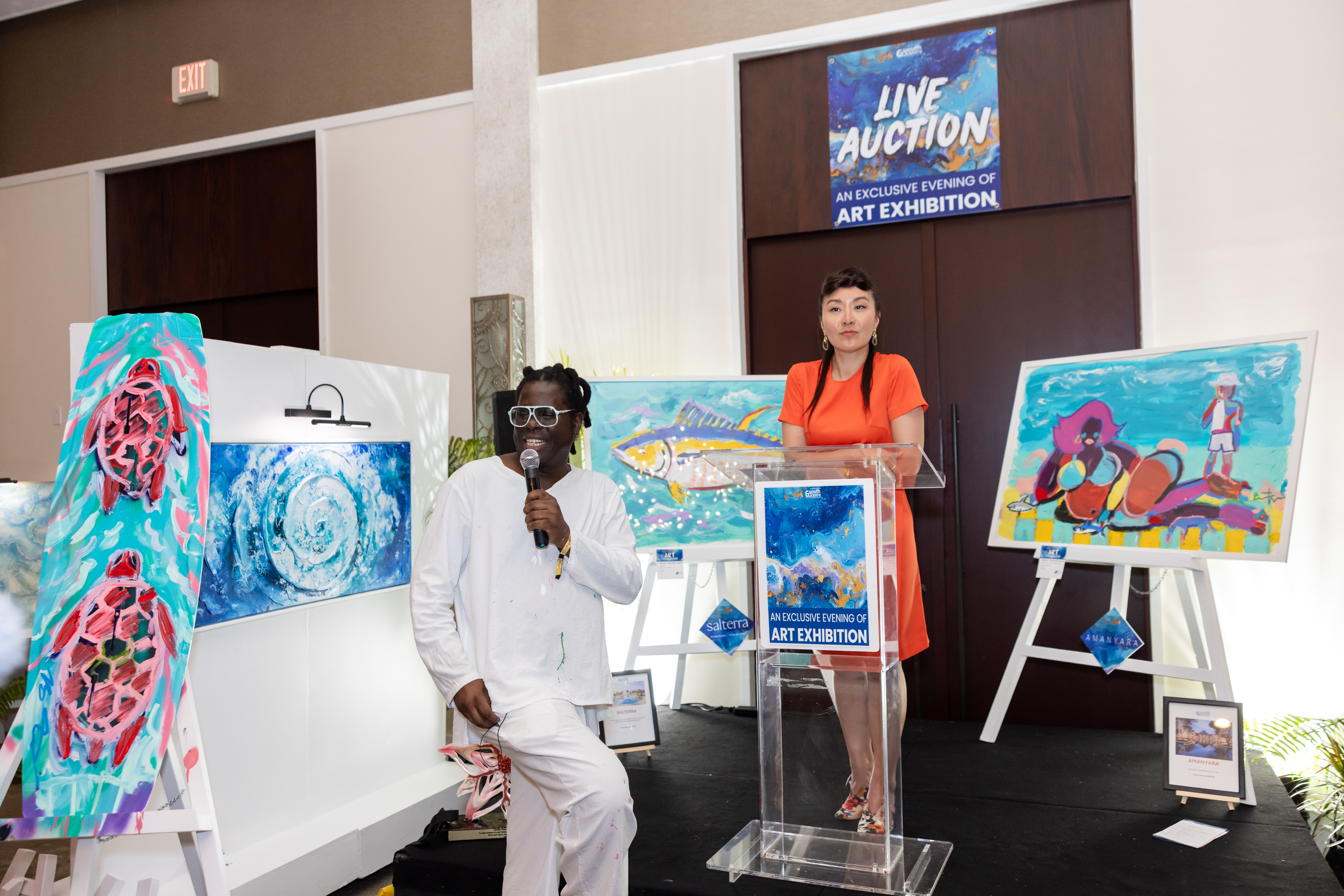 “This year’s art auction was driven by the star power of native son and internationally renowned artist Bradley Theodore Harvey and the refined powerhouse Phyllis Kao from Sotheby’s New York City, who ran an electric live auction and with Bradley elevated the entire evening,” said Joe Zahm, President of Turks & Caicos Islands Sotheby’s International Realty.