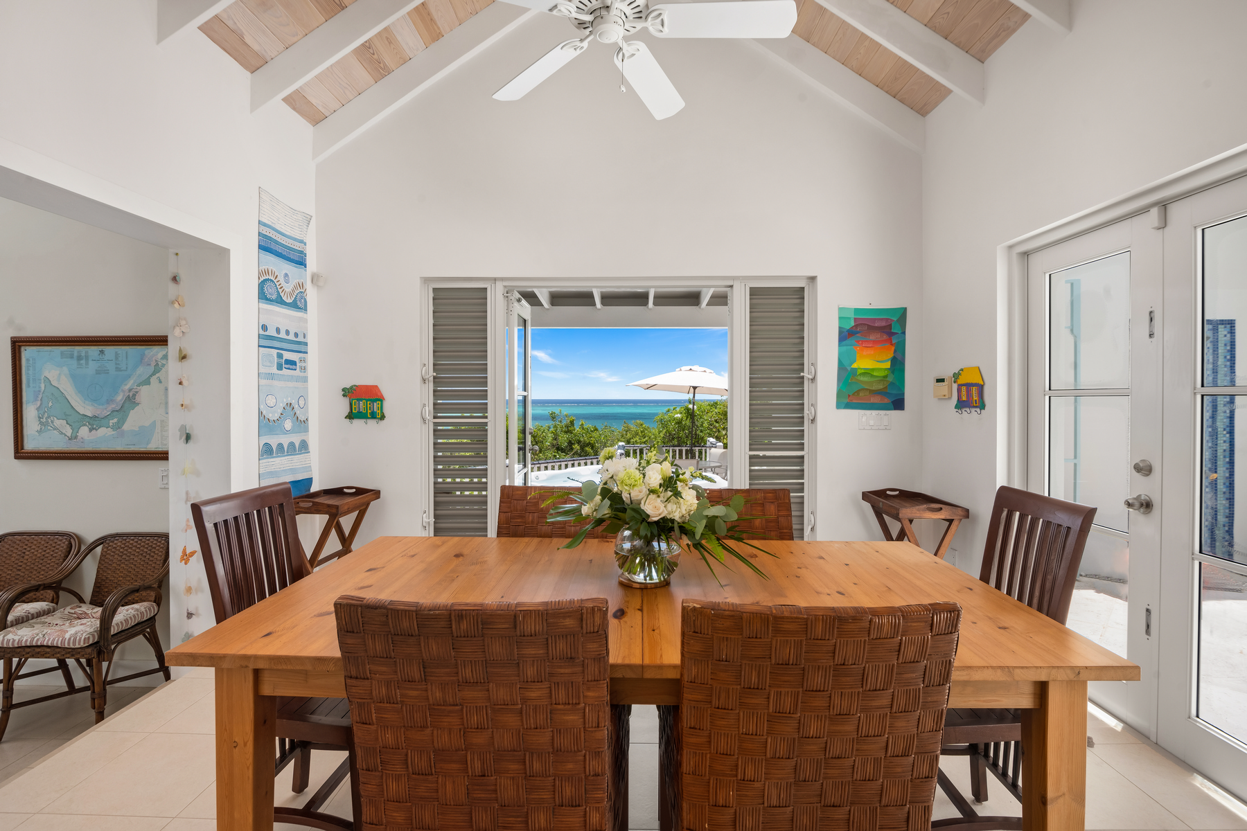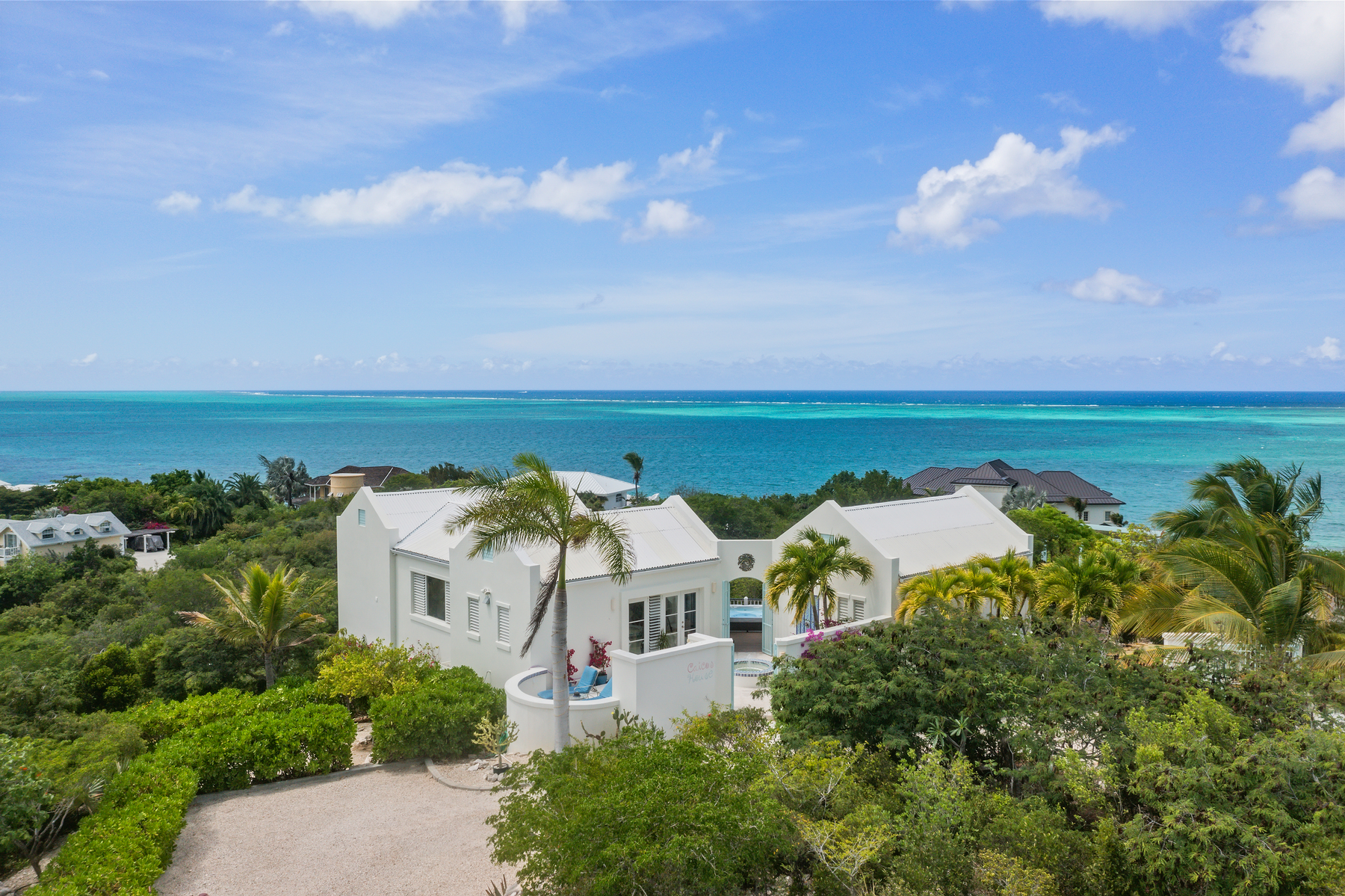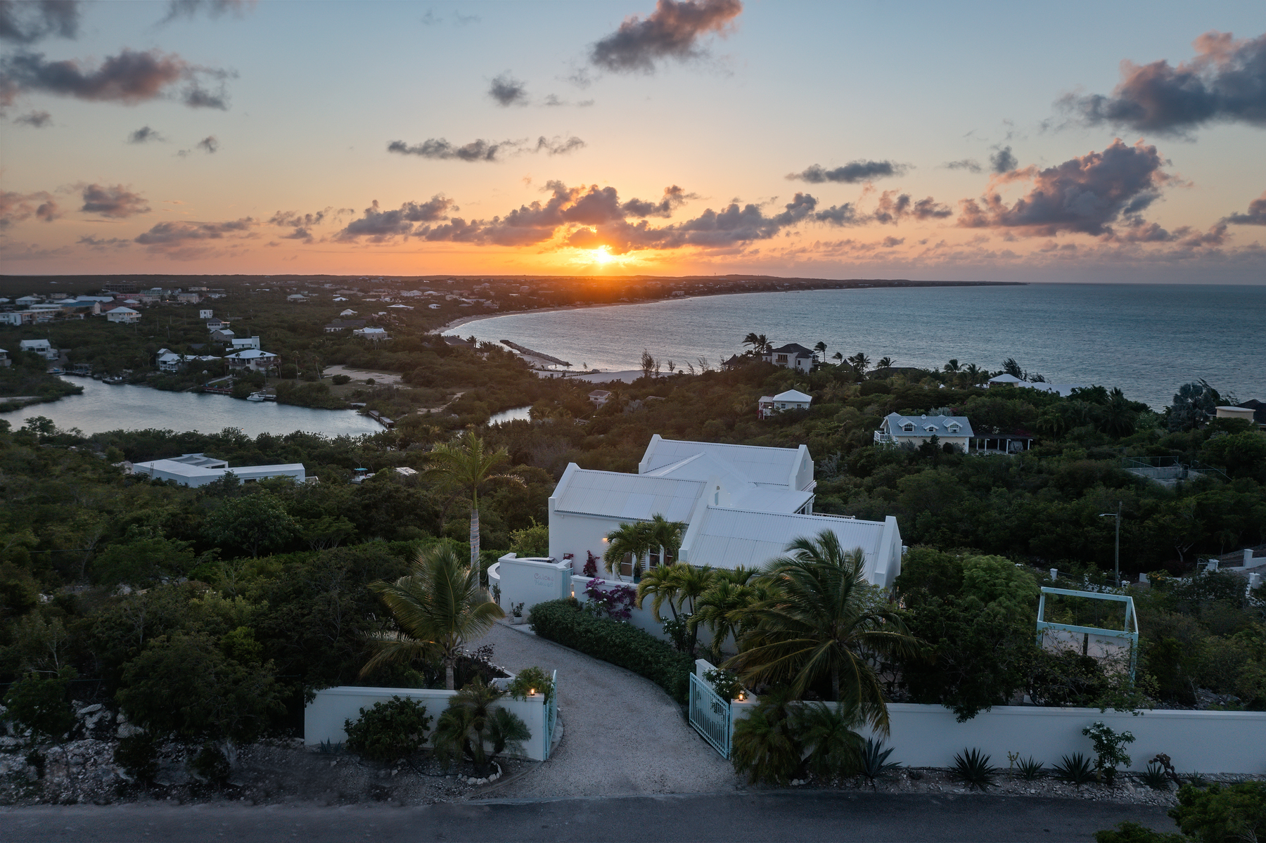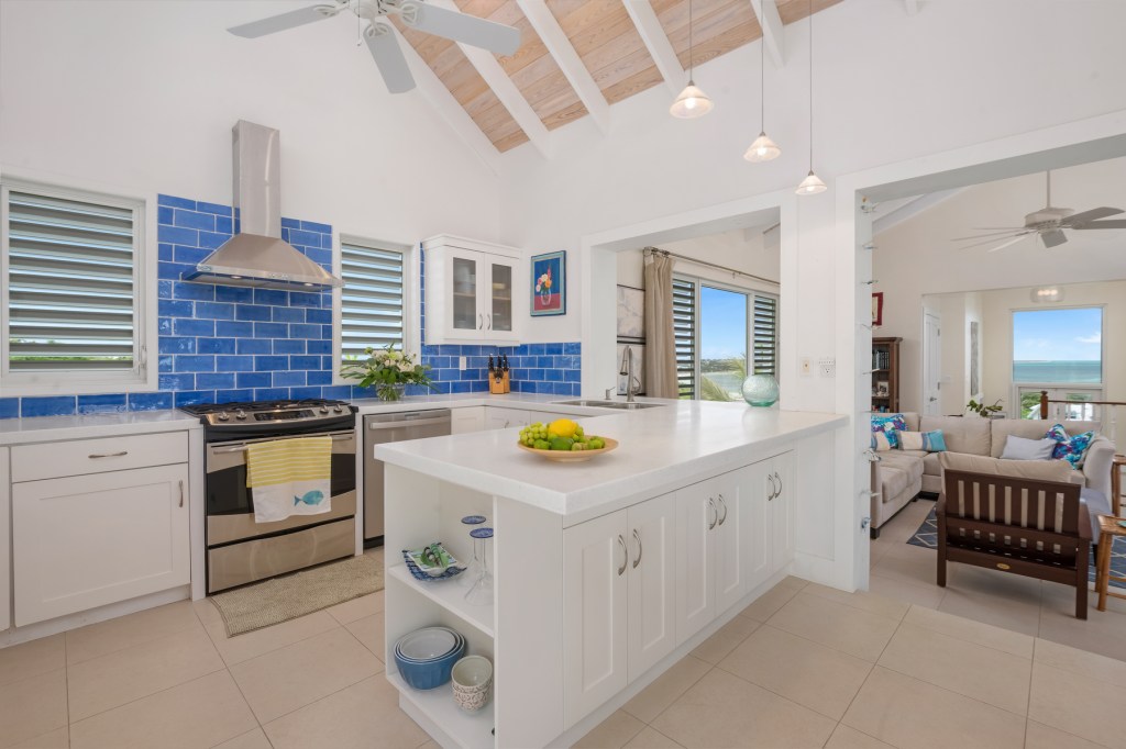 Impressive ocean views situated at 80 feet above sea level on the west side of Blue Mountain in Thompson Cove, ‘Caicos House’ offers a vista of spectacular sunrises, sunsets and views from Northwest Point to North Caicos.