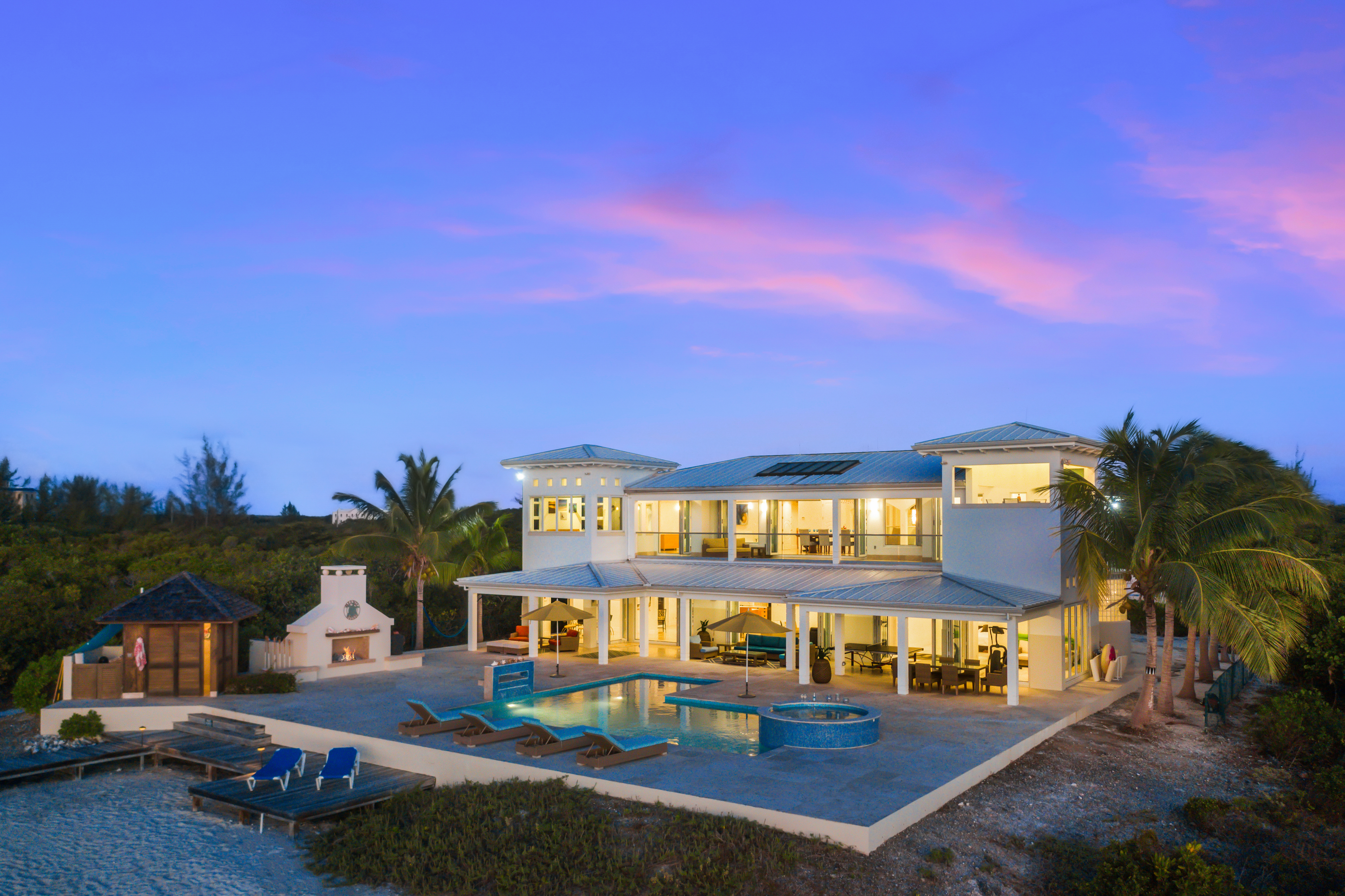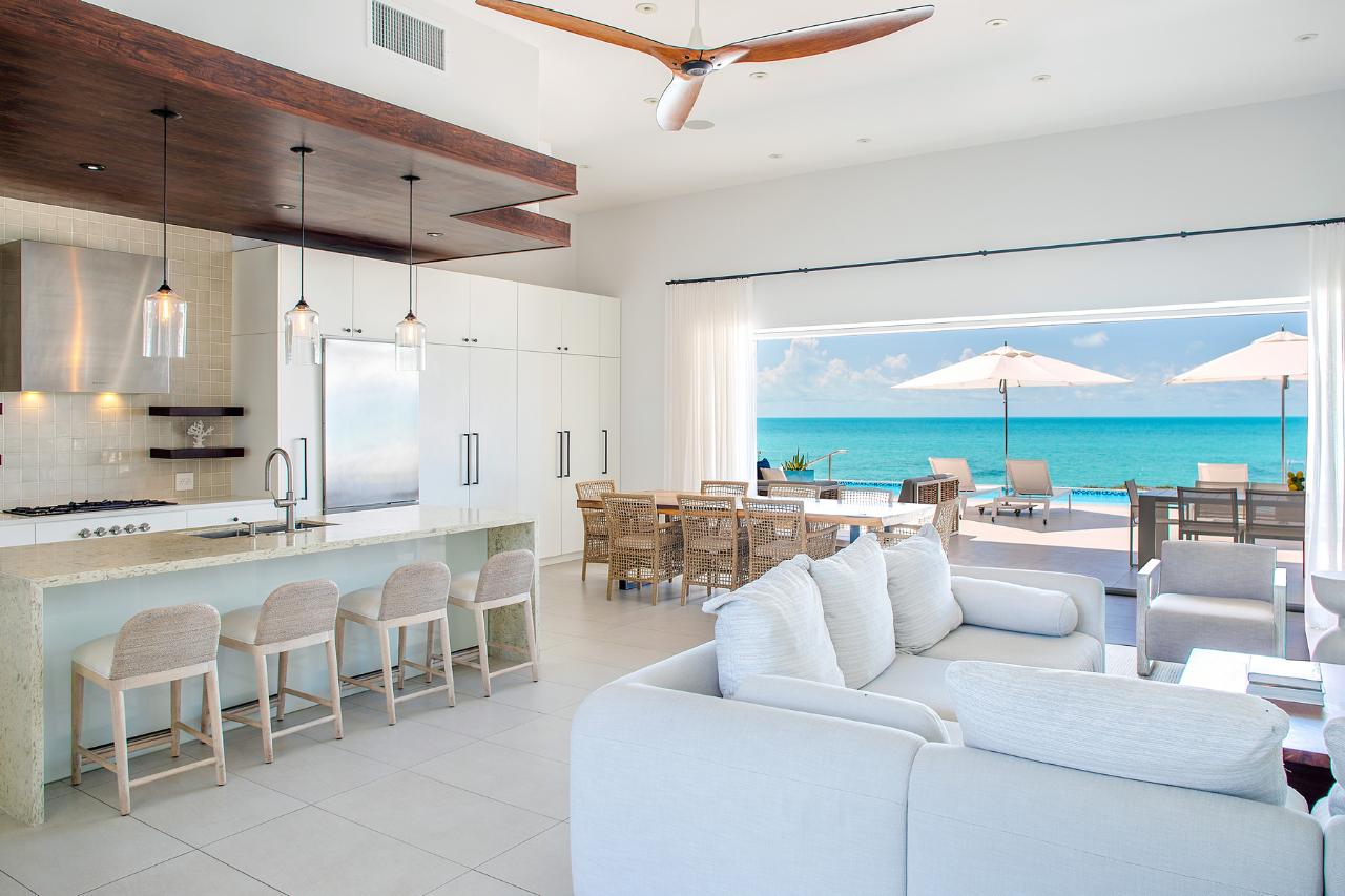 The iconic Tip of the Tail Villa is positioned on a glorious site that is impossible to replicate. A true “piece for paradise”, Tip of the Tail Villa has the “it” factor. The fabulous, 5 bedroom oceanfront home, with an ample 5,456 sq.ft internal plus 2,646 sq.ft exterior under roof sits on over one acre of land. But that’s not all. With an extraordinary 472 feet of water frontage with the Caicos banks to the front and magnificent ecosystem to the side and rear, one can enjoy lazy afternoons on their own private beach on Flamingo Lake in style.