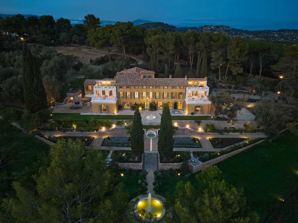 Overlooking the bay of Cannes and the Esterel, in the heart of a secure estate between Mougins and Cannes, just a few kilometers from the beaches, this magnificent Master’s residence is nestled in the heart of 19 hectares of forest (classified wooded area), olive trees, vegetable garden, and numerous Mediterranean species. 5 hectares of fully landscaped and enclosed land surround the property, providing perfect privacy.