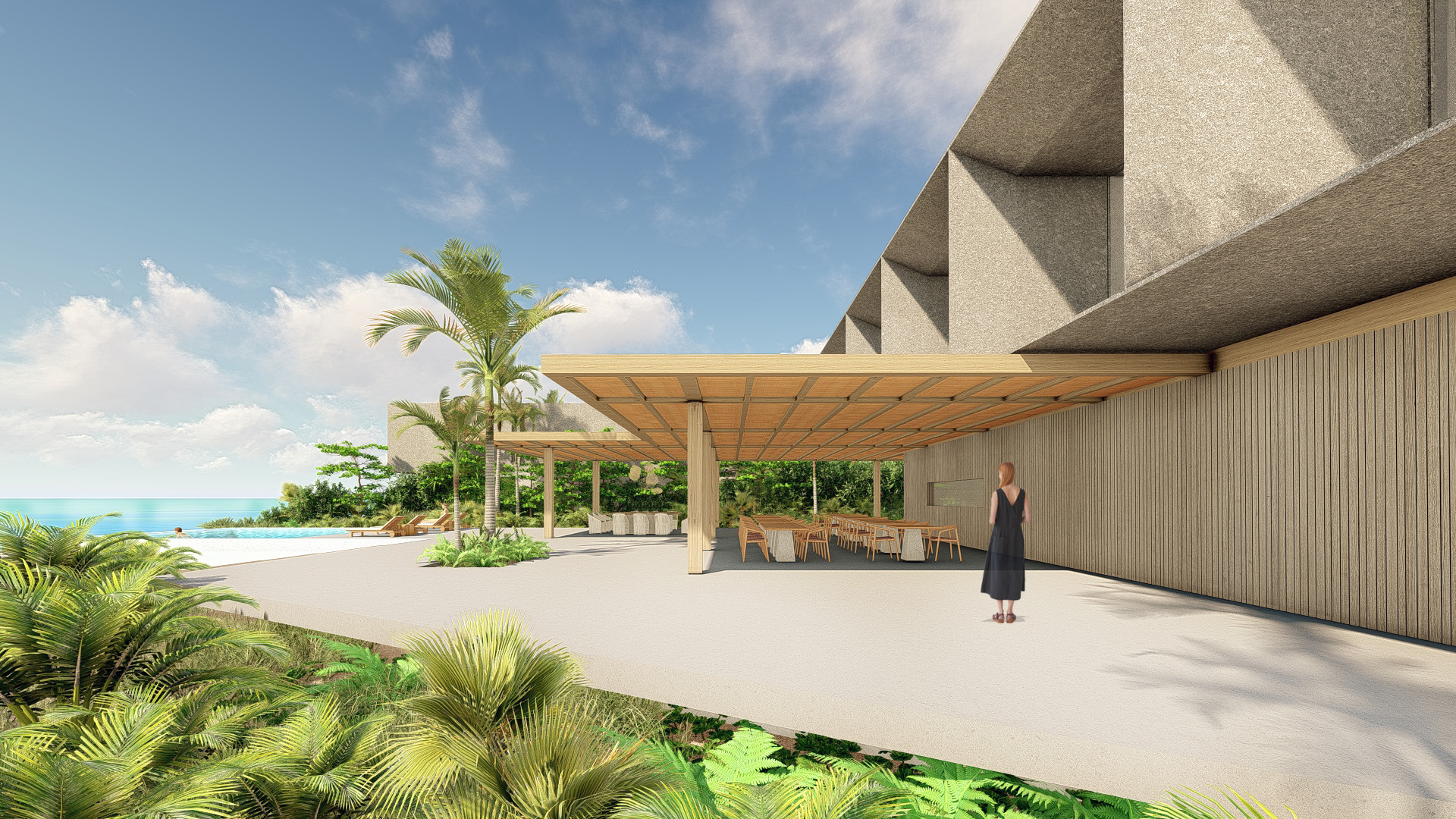 The upper level of the Beach Club will have five luxury studio hotel suites for rental guests or owners who may have overflow guests during their family vacations.