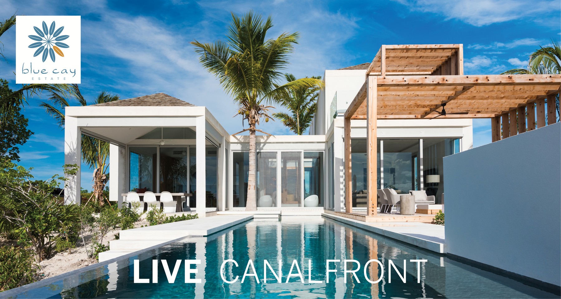 Completed in 2019, Blondel Cove is the only property within Blue Cay Estate to span two original channel-front lots for total privacy. Designed by Blee Halligan architects, high design is featured throughout this custom homeโs exterior and interior spaces, from the gated entrance tucked in at the cul-de-sac, ocean views lead you into the 4-bedroom Main House over the entry walkways over reflection pools and through the dramatic foyer to the vast great room and pool terrace beyond.ย