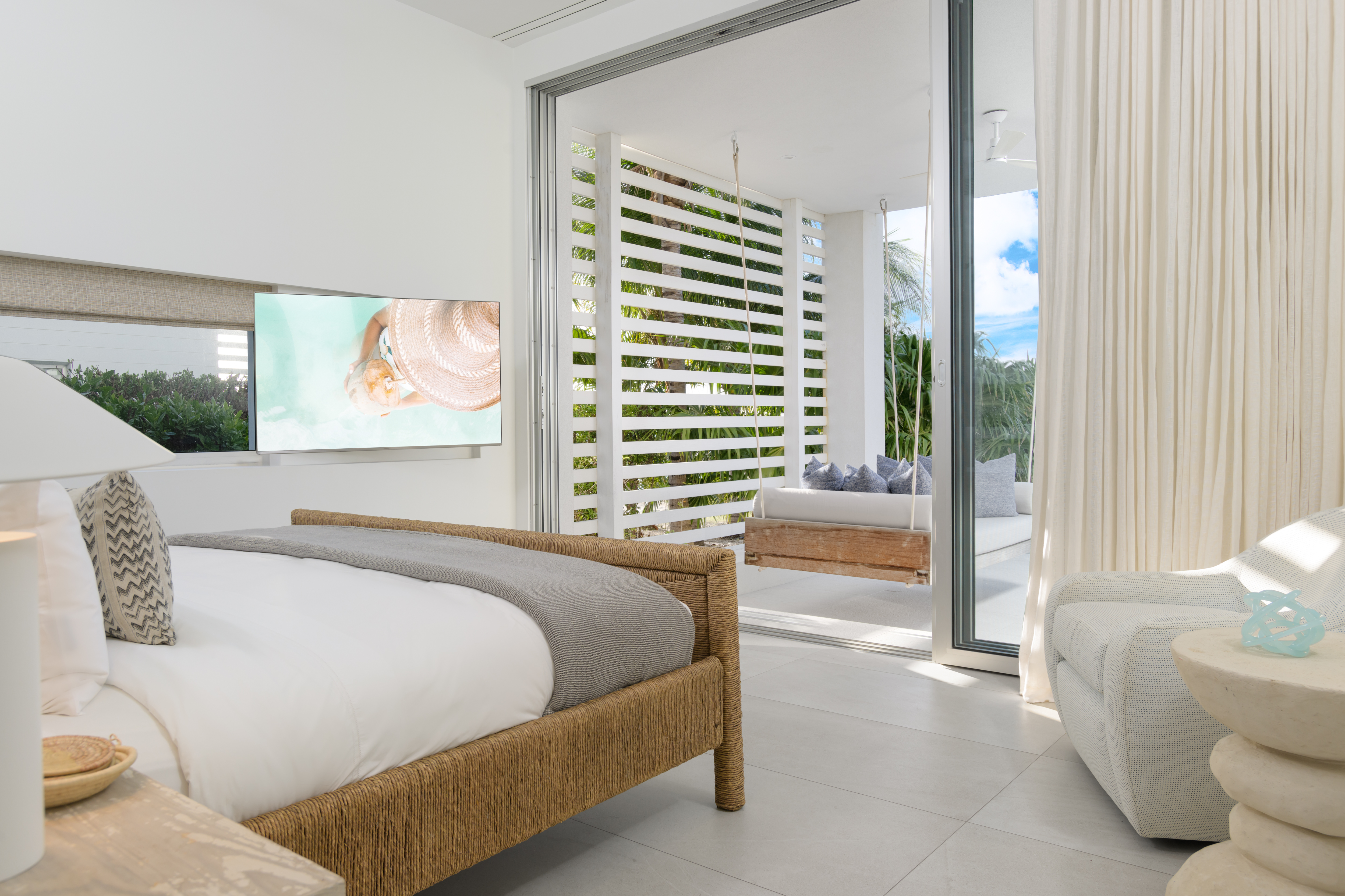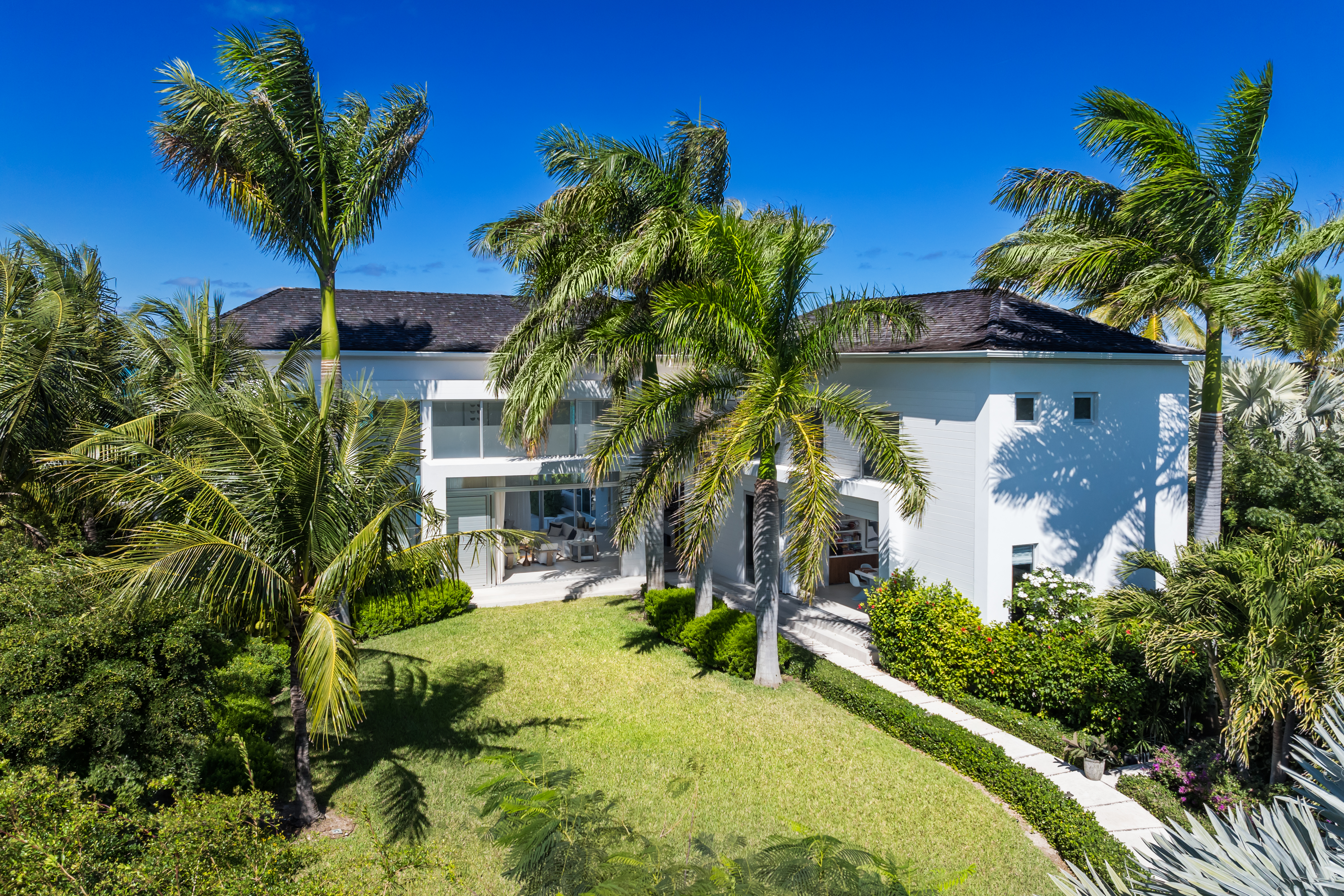The property’s privacy is enhanced by lush landscaping framing the driveway. Just seven minutes from Grace Bay’s attractions, the Beach Enclave community provides residents with access to an on-site gym, tennis court, and management reception. While not currently participating in Beach Enclave’s rental program, the villa is eligible for inclusion should future owners desire.