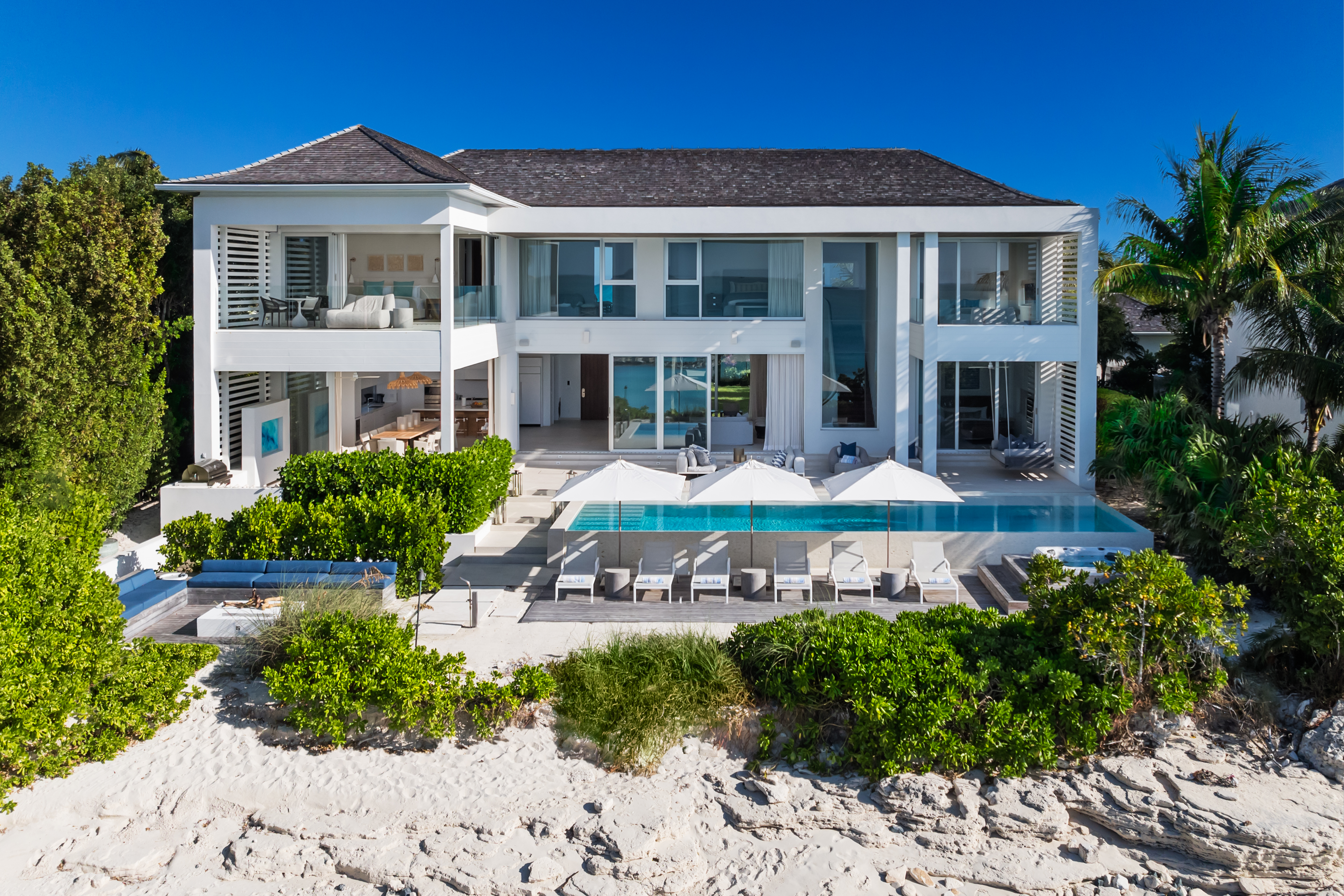 Thoughtfully designed for family gatherings, this 7-bedroom beachfront villa offers multiple primary suites and is the ideal multi-generational home, serviced and managed by Beach Enclave.