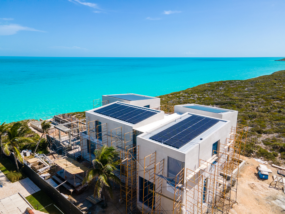 Also on the south coast, overlooking Cooper Jack Bay 10 miles away,ย The Strandย is another luxe community development set to combine villa ownership with guest rentals but with a difference: in one category, the two and three bedroom Villas, floors can be locked off as separate units to be rented on their own as well as the option of a complete house rental. The design is also contemporary but with natural elements providing a warm counterpoint to the modern lines: etched limestone from the Dominican Republic, European oak cabinets and millwork. Thereโs also a strong sustainability element: owners can opt for solar energy and there are chargers for electric cars in the houseโs garage.
