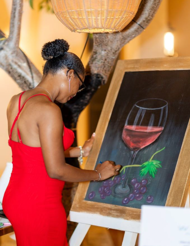 Attendees were treated to a thoughtfully curated five-course meal, each dish perfectly paired with wines from the esteemed Kobrand portfolio. During the evening, talented young artist Bryanca Brown created a live painting to commemorate the night. This original piece, along with other exciting prizes, was auctioned live to raise funds for the impactful work of the TC Health and Wellness Foundation (TCHWF).