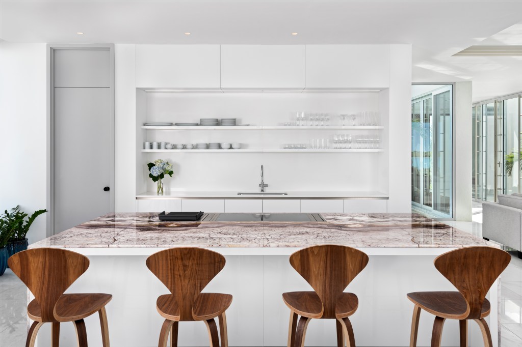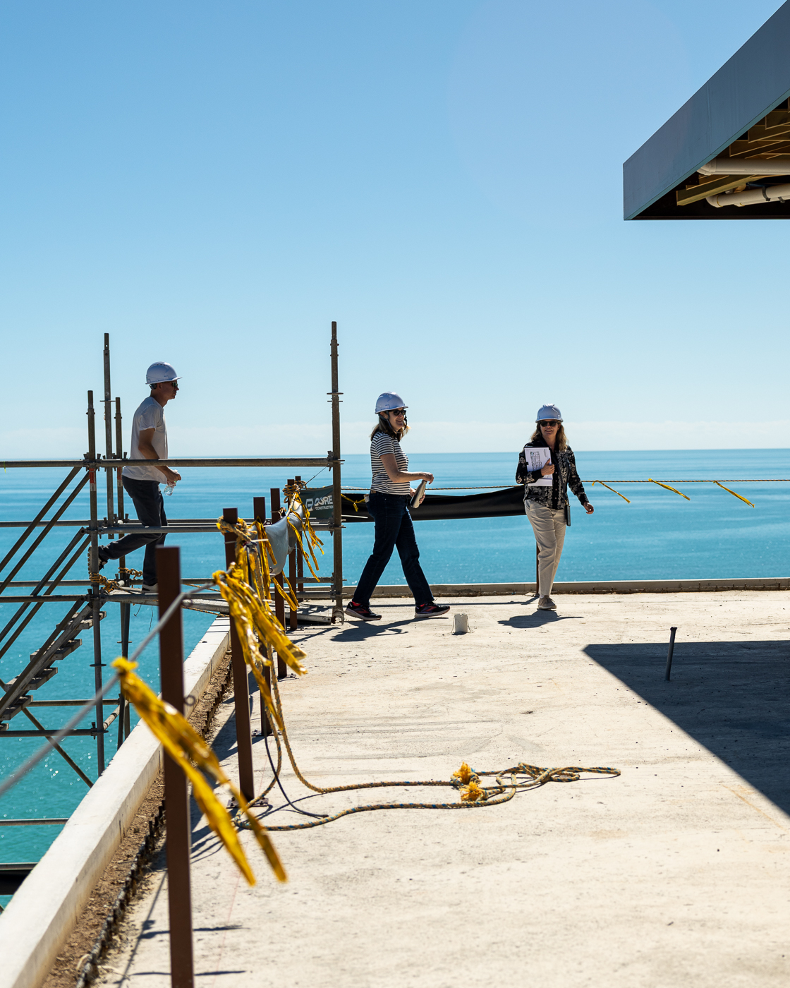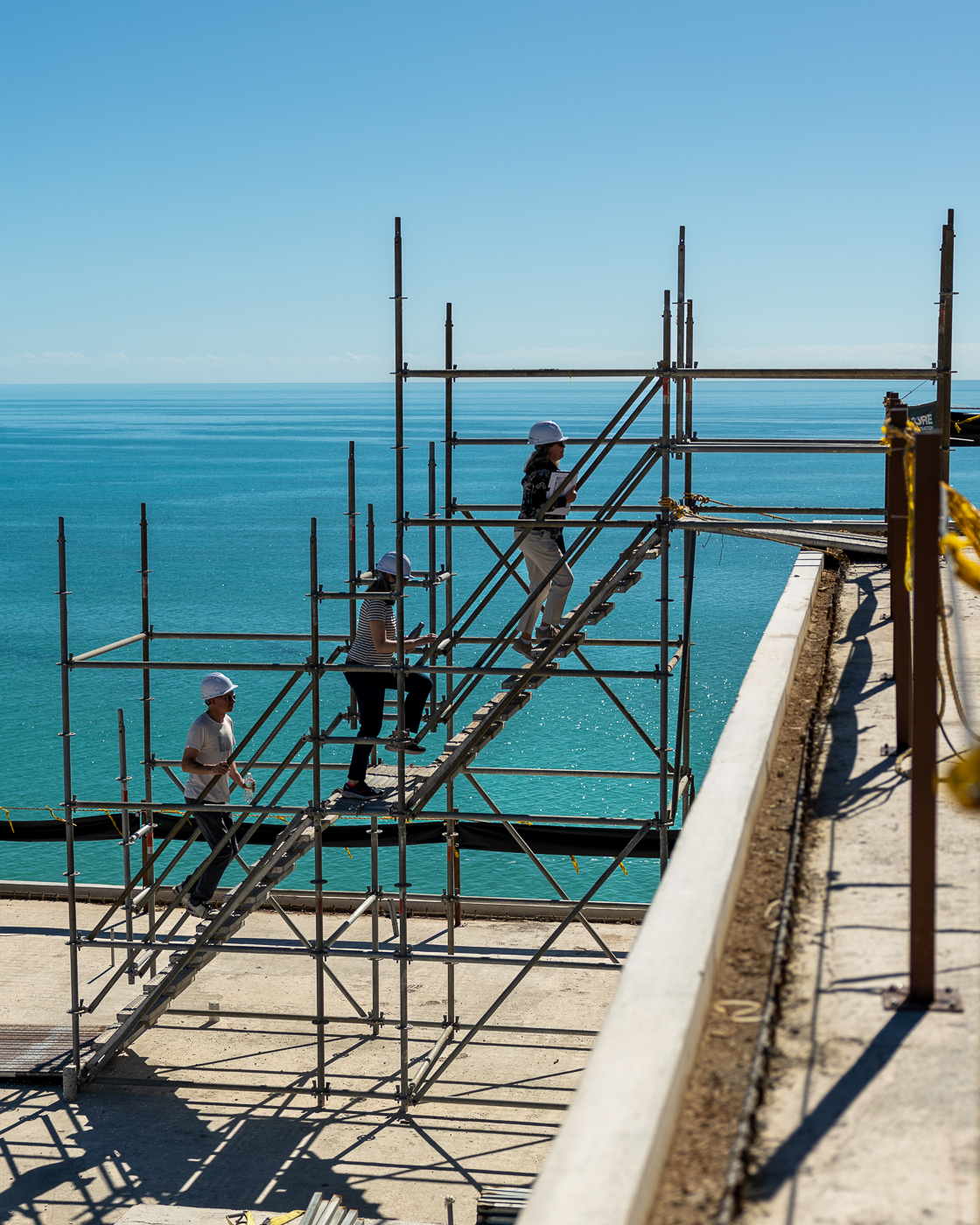 Construction is advancing steadily with the penthouse now fully taking shape. The expansive living spaces, a custom-designed kitchen, fluid indoorโoutdoor entertaining areas, and a raised pool terrace poised above the waterline now clearly define the architectural intent of Piero Lissoni.